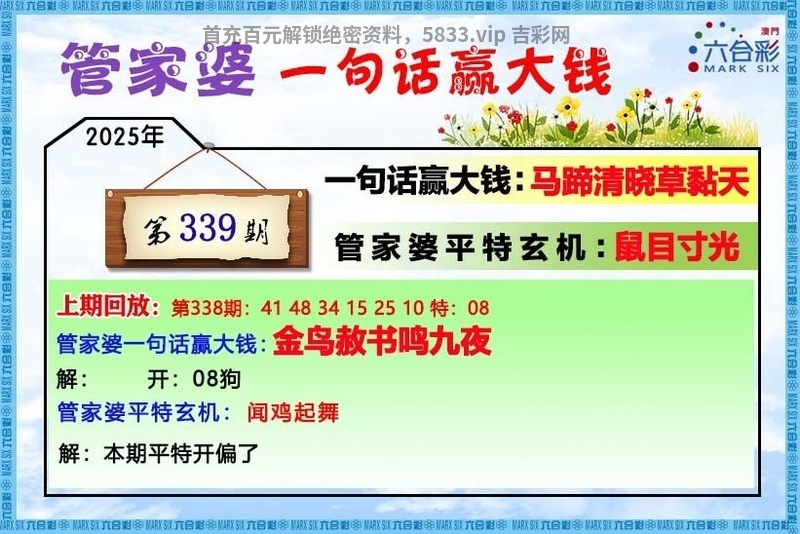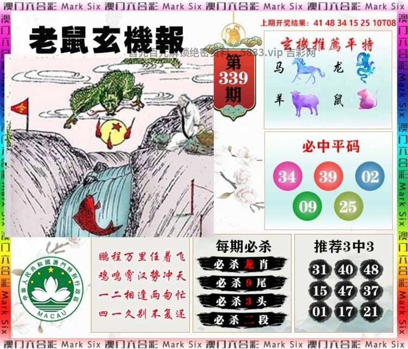 | 339期:天地两肖【天肖+鸡羊】开:马48准 |